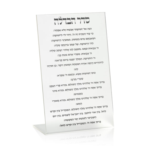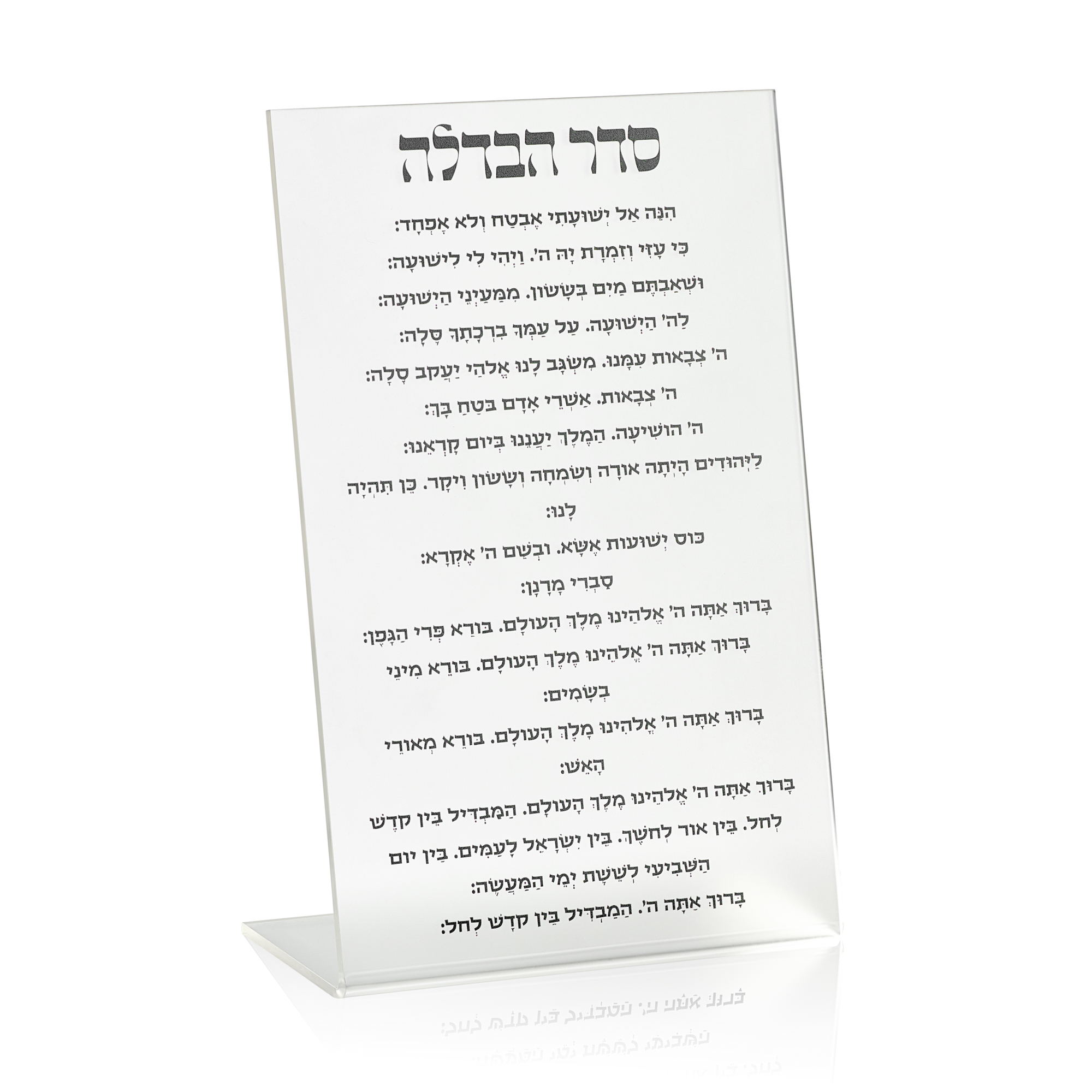 Seder Havdalah Plaque: A refined, transparent plaque with the full Havdalah text, designed for long-lasting clarity.
